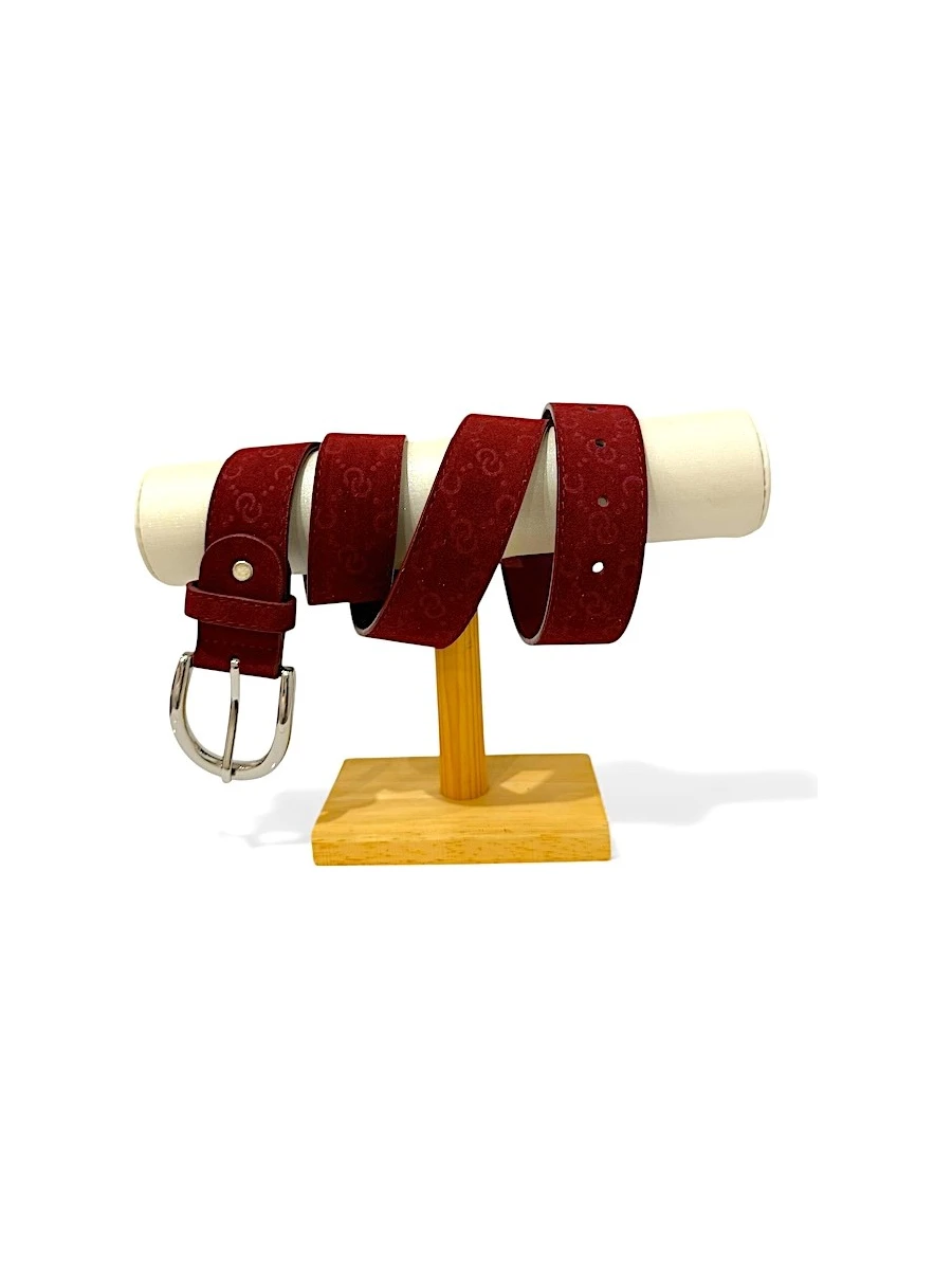 Cinturón de ante granate con acabado suave y un diseño clásico que aporta textura y estilo a tus looks del día a día.