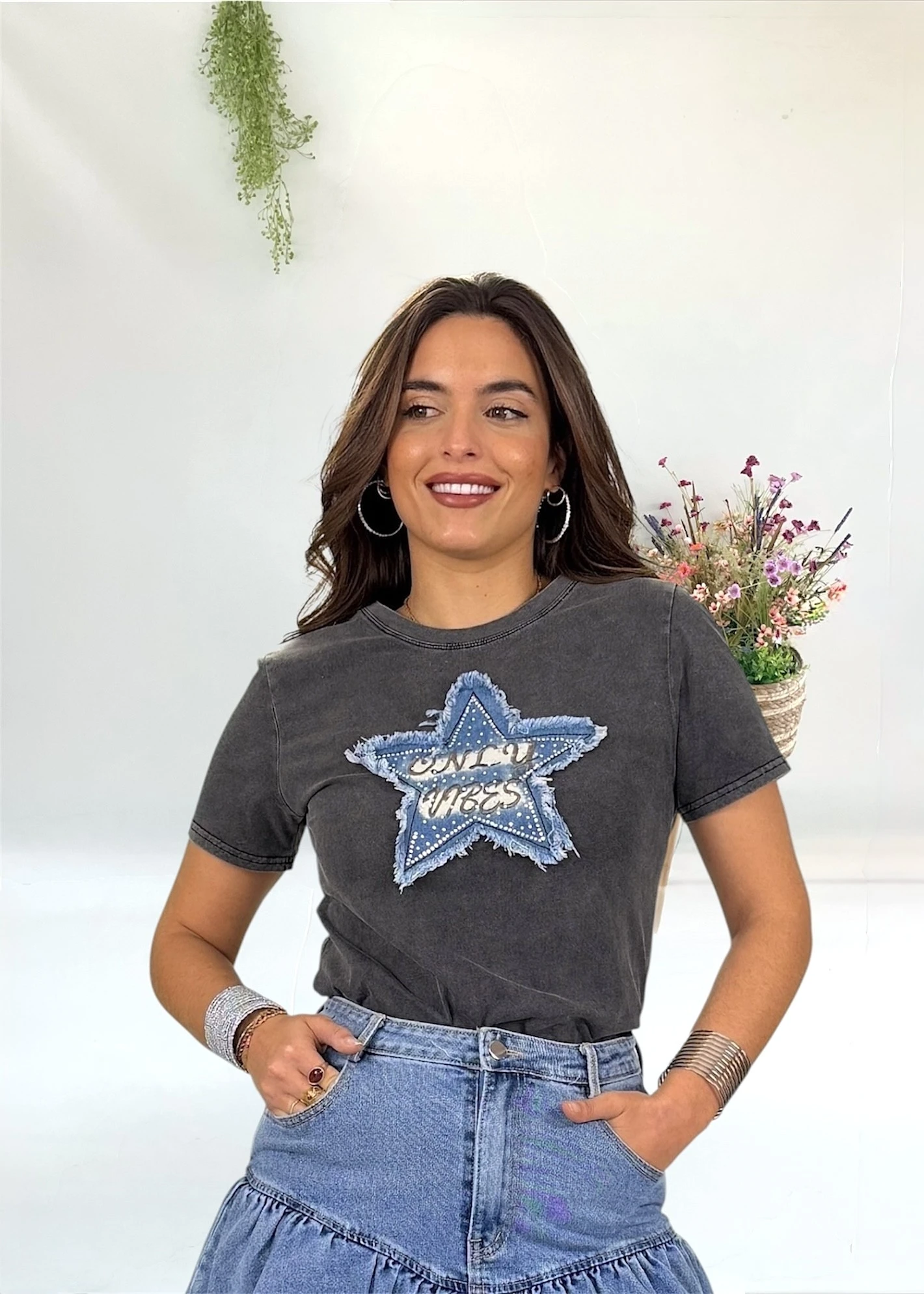 Camiseta Estrella vaquera fondo gris