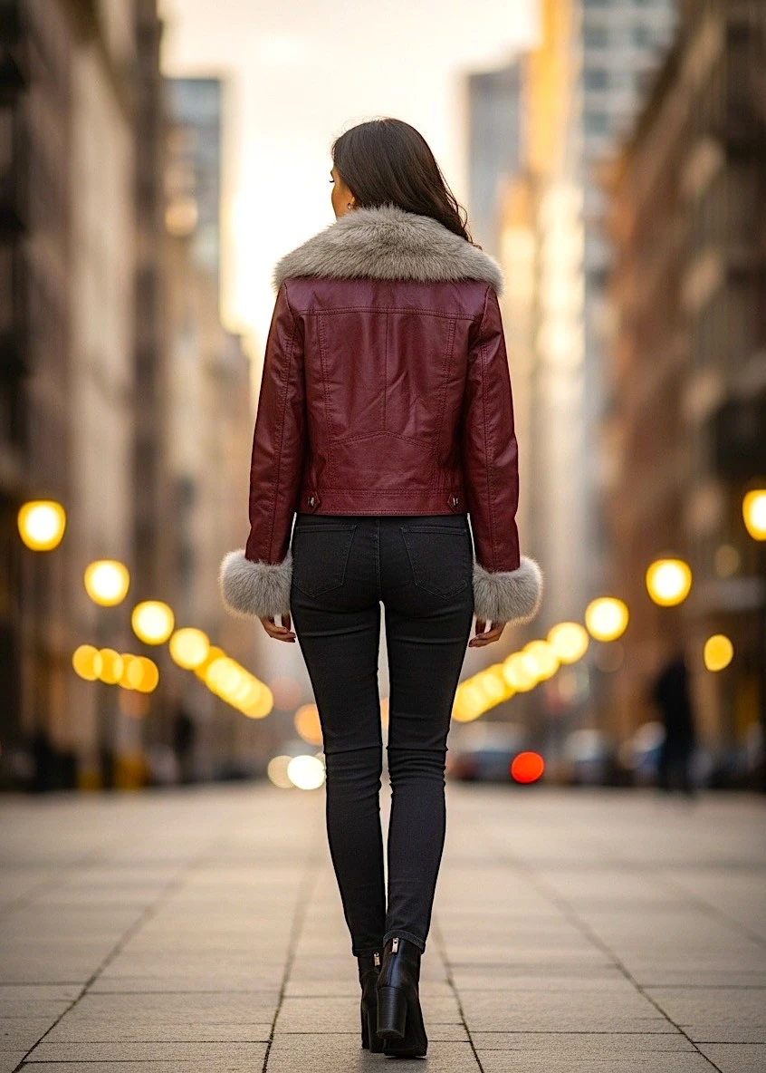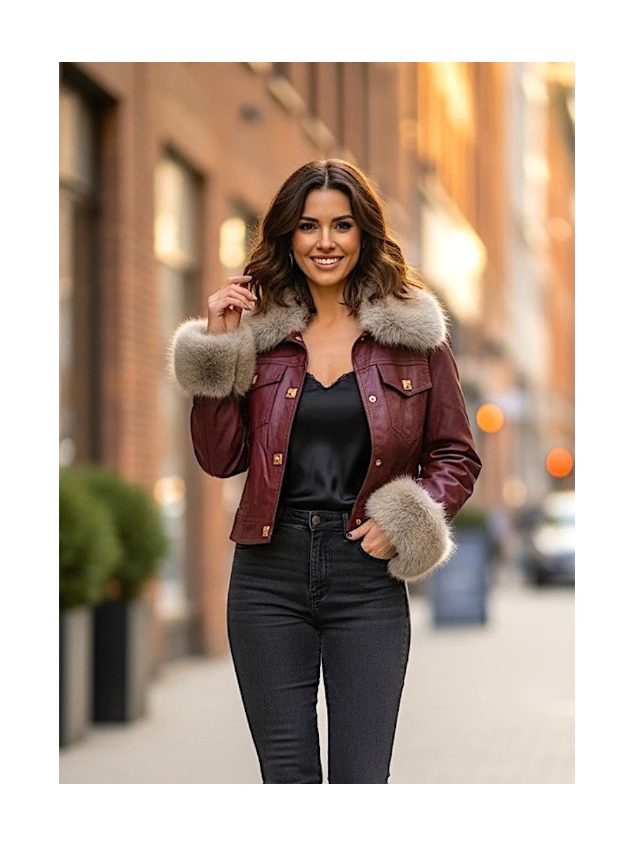 Cazadora efecto piel budeos con cuello y puños de pelo sintético desmontable. Interior forrado con pelito suave que aporta confort en días fríos.