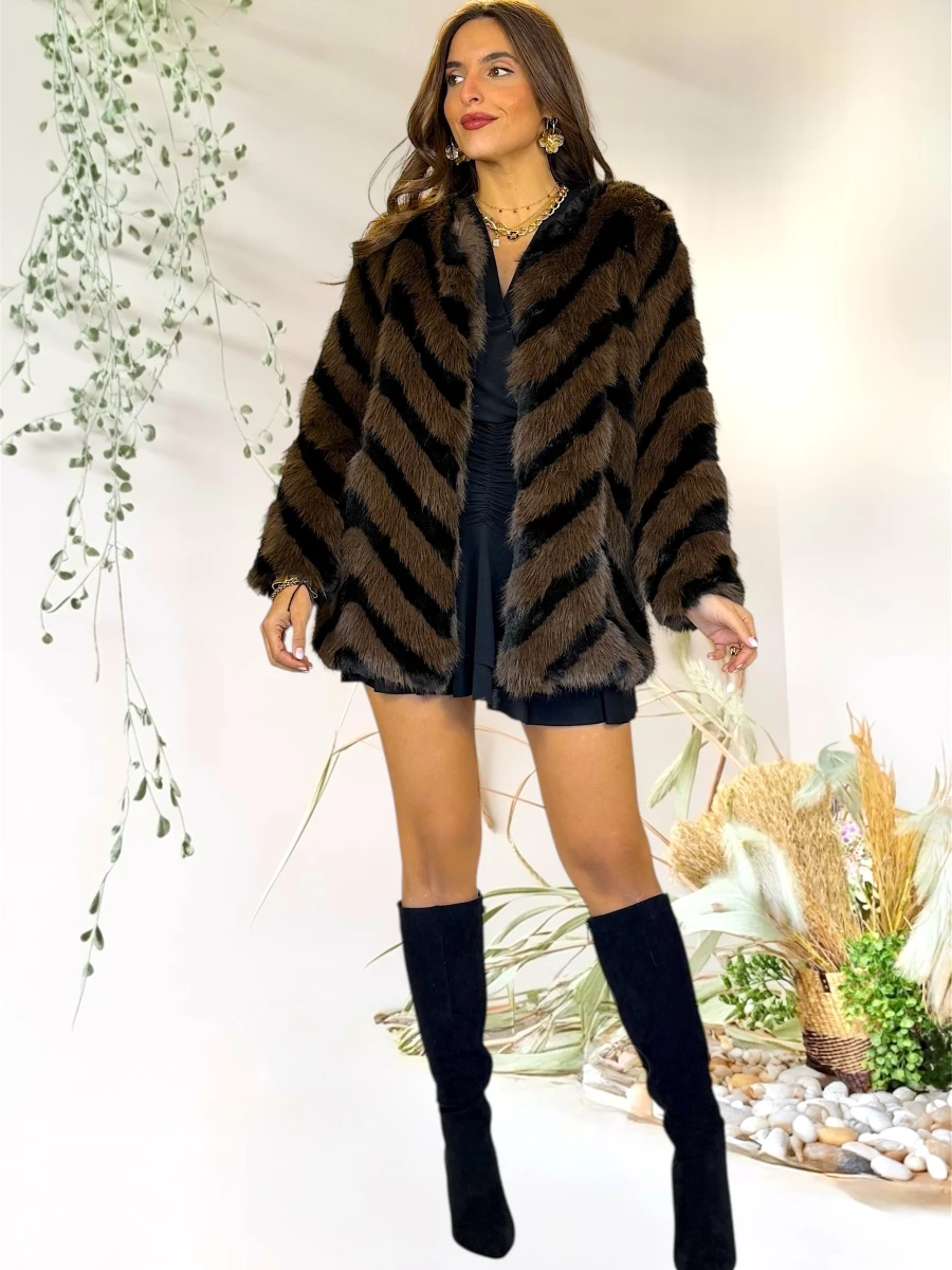 Chaquetón de pelo suave con un diseño actual y favorecedor, pensado para abrigar con estilo en los días fríos.