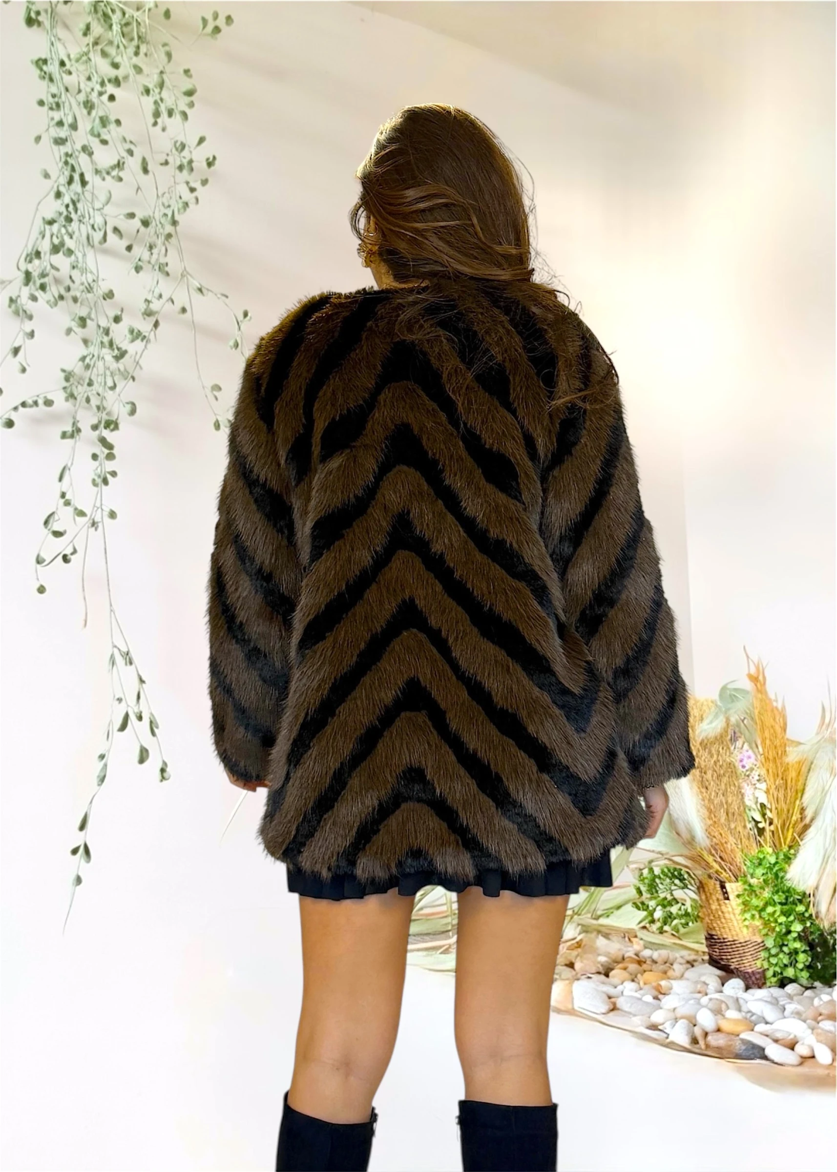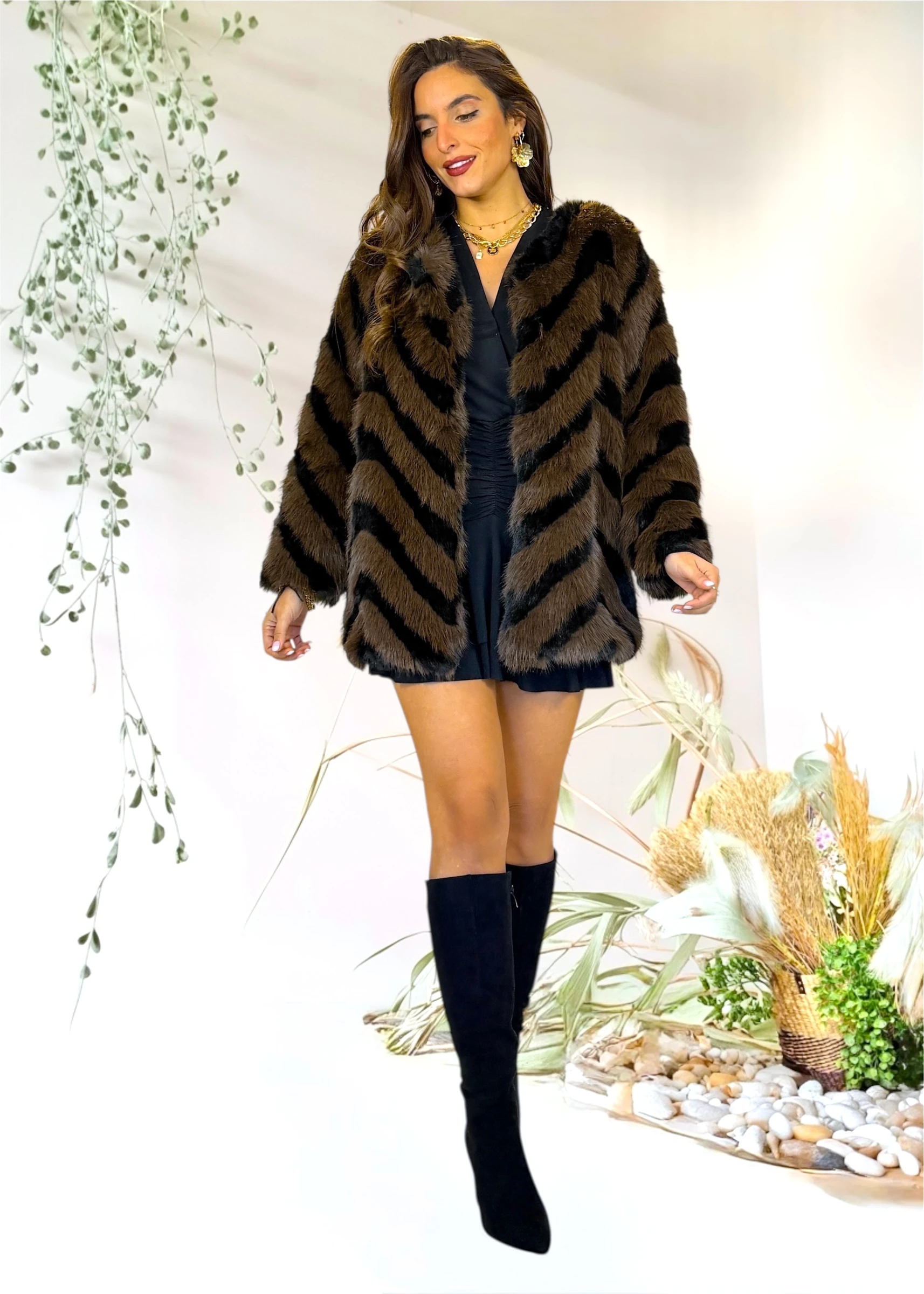 Chaquetón de pelo suave con forro interior y bolsillos. Elegante, cálido y con un diseño que aporta textura y estilo a tu look.