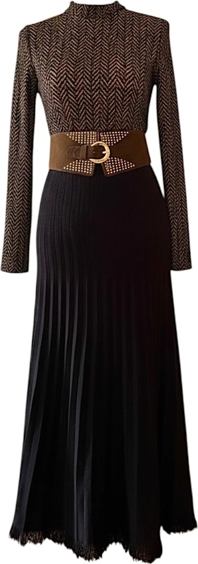 Falda de punto grueso ligeramente plisado, no marca y se adapta con estilo. Ideal para looks cómodos, femeninos y con movimiento.