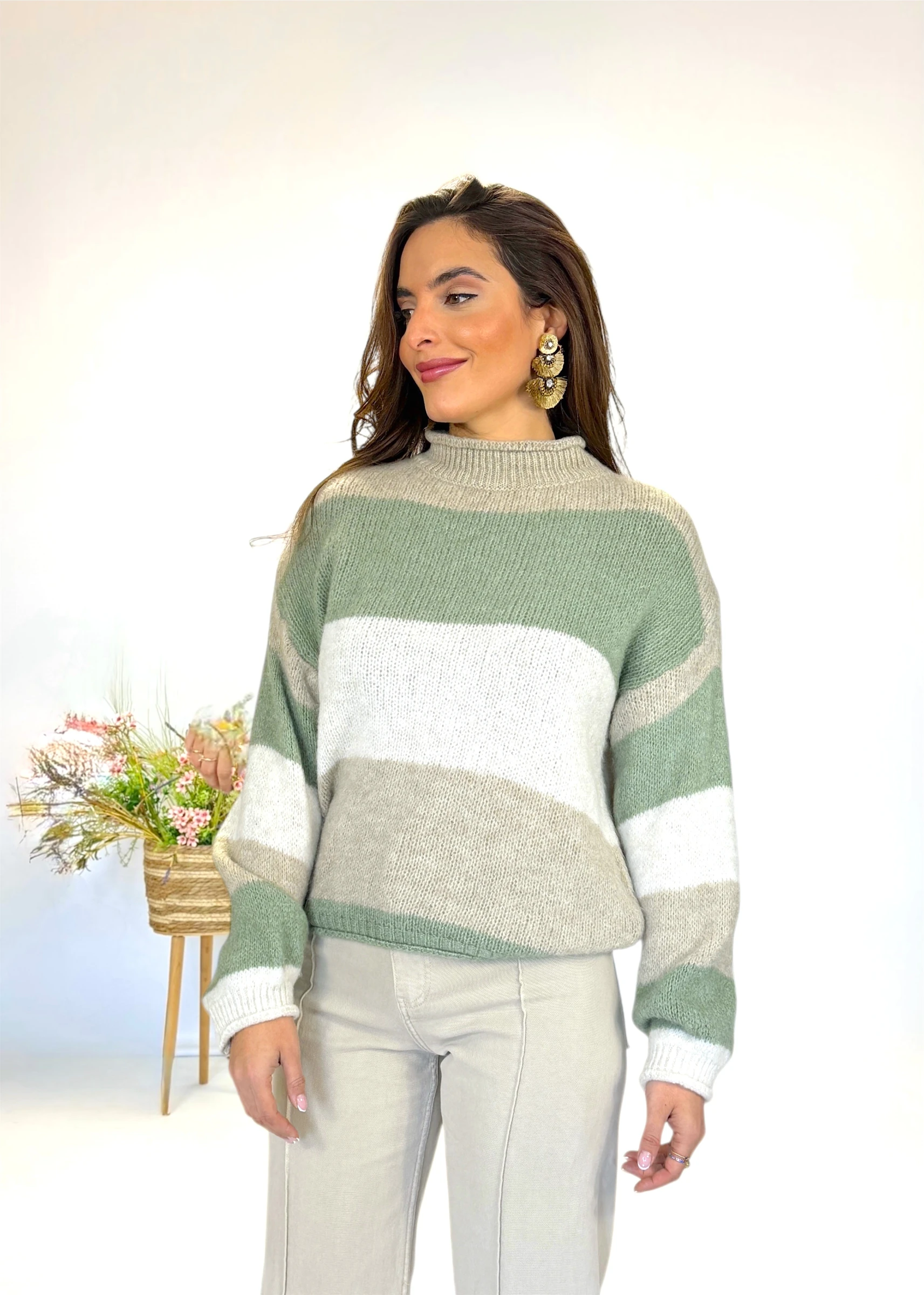 Jersey Ani verde y beige