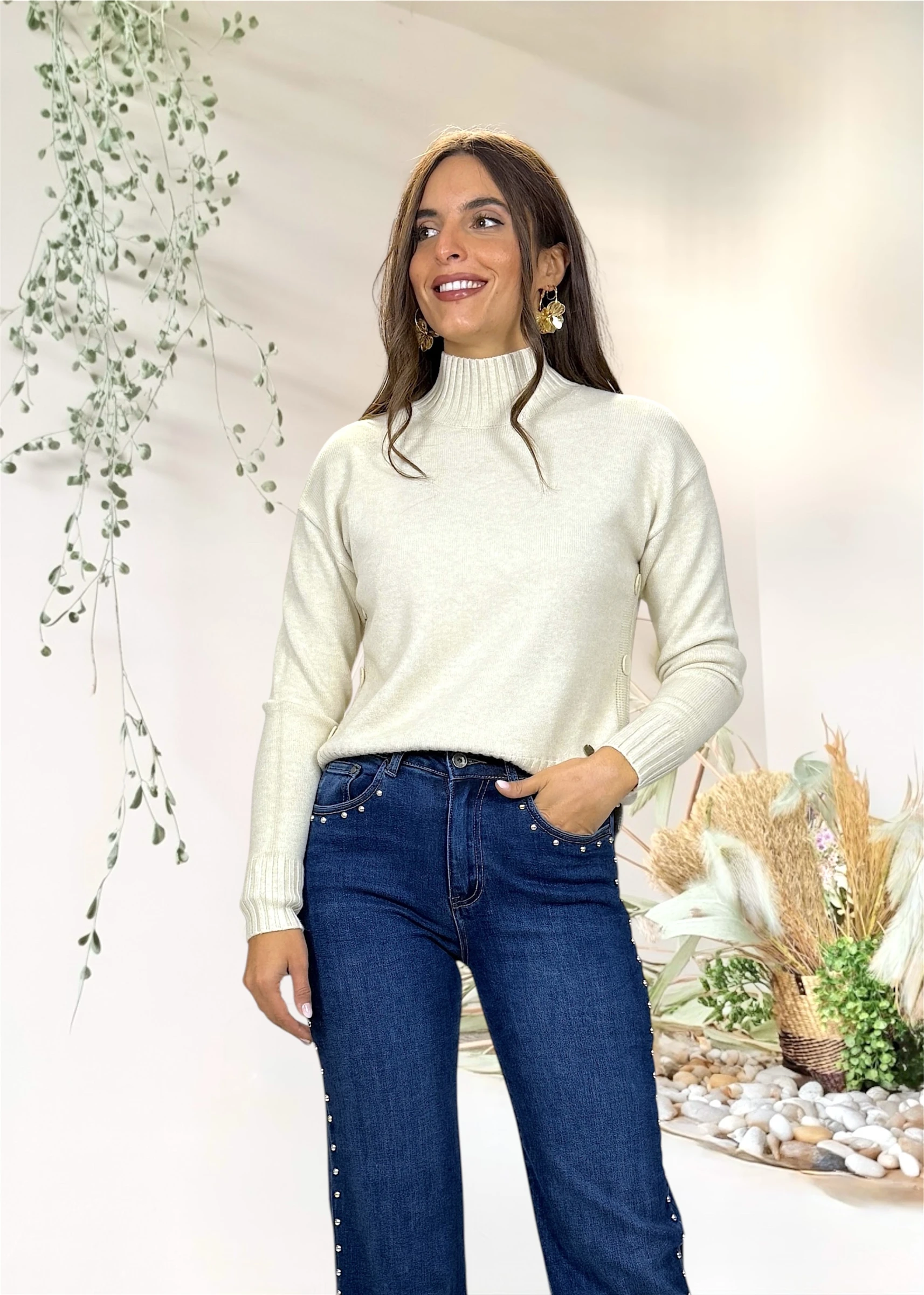 Jersey de punto suave con un diseño limpio y detalles que marcan la diferencia. Perfecto para looks cómodos sin perder el estilo.