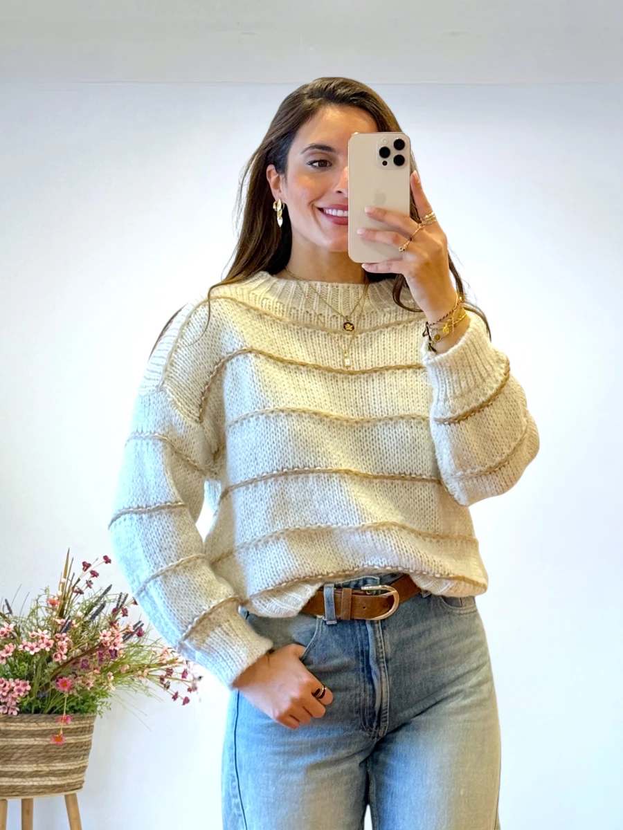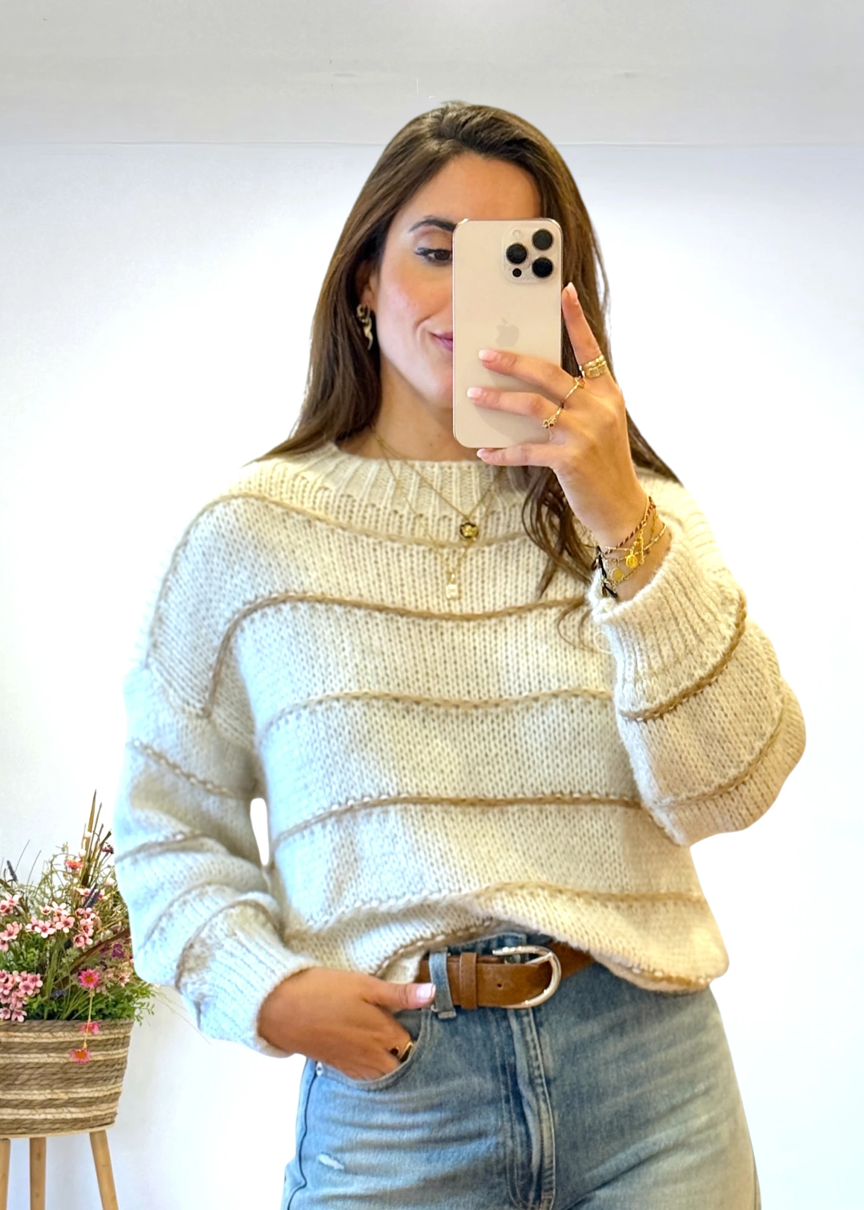 Jersey oversize con diseño cómodo y suelto. Talla única que se adapta de la 38 a la 40. La modelo mide 1,71 m y lleva la talla única.