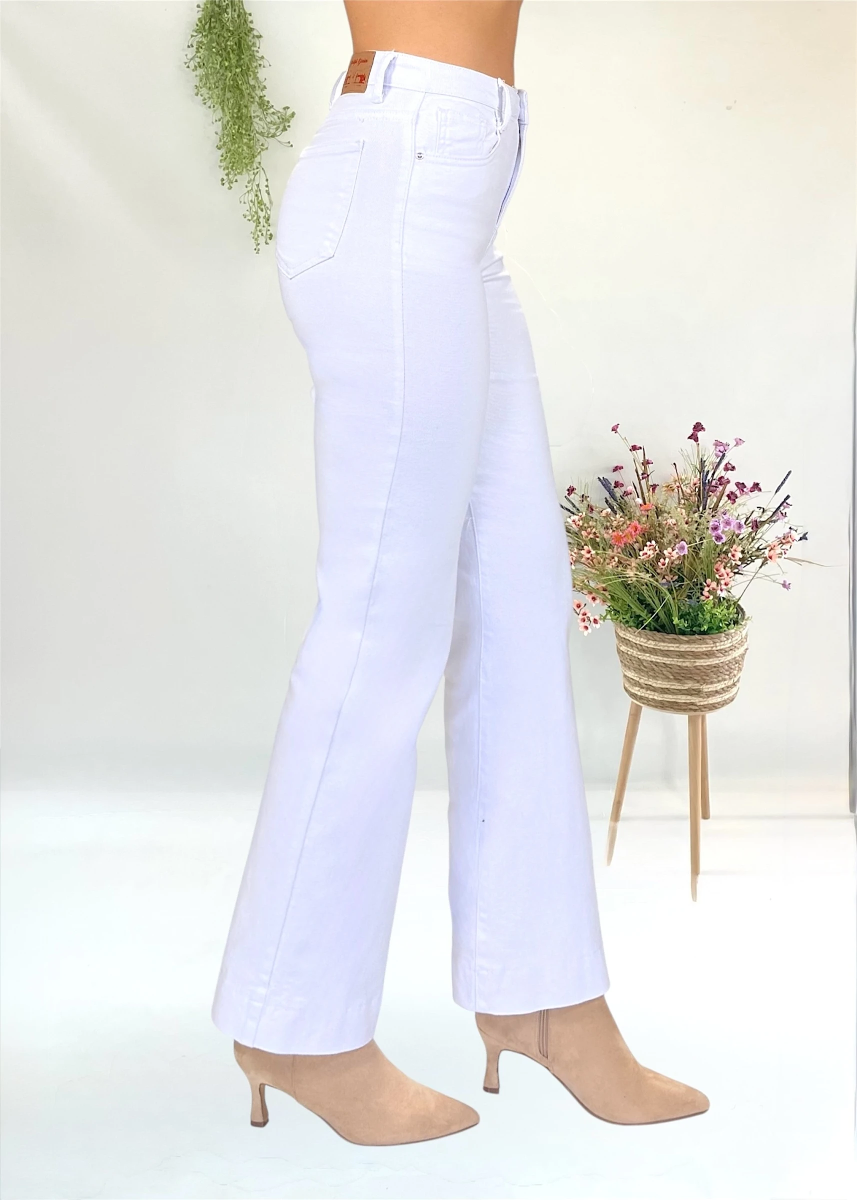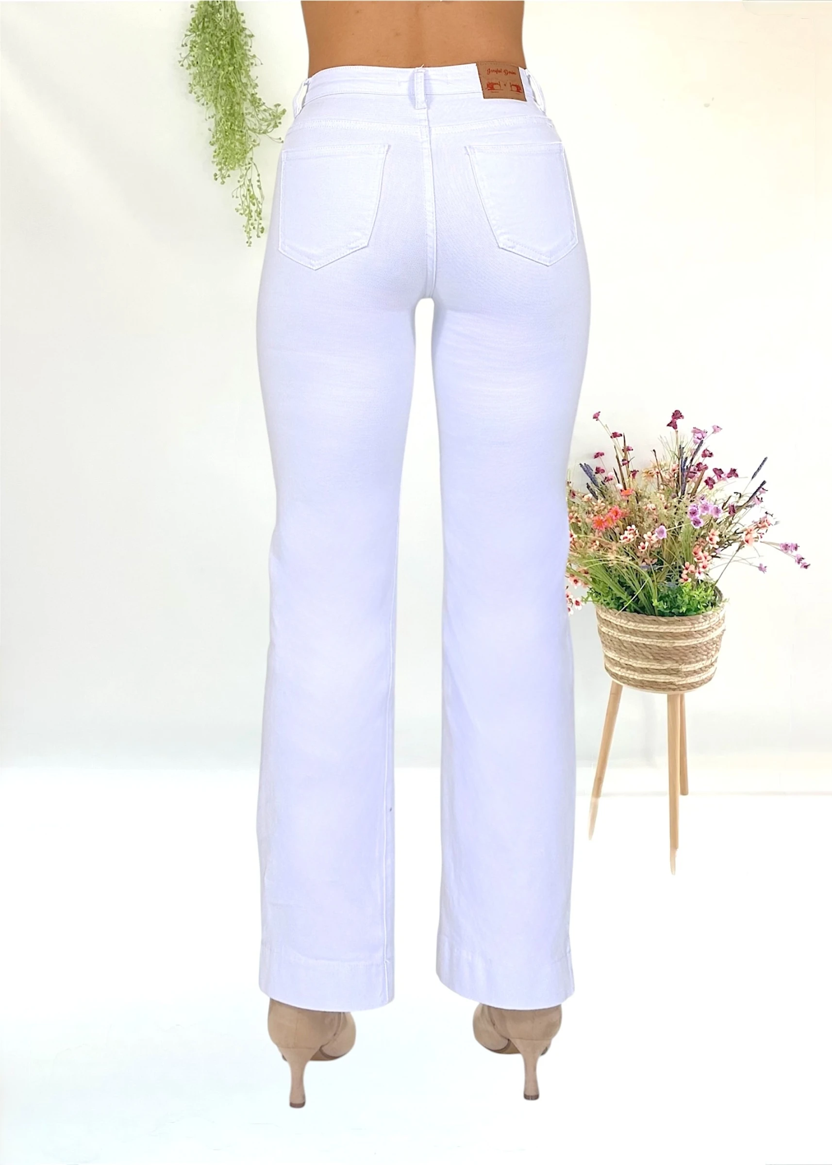 Pantalón blanco de corte recto, una prenda imprescindible que combina elegancia y comodidad en un diseño limpio y favorecedor.