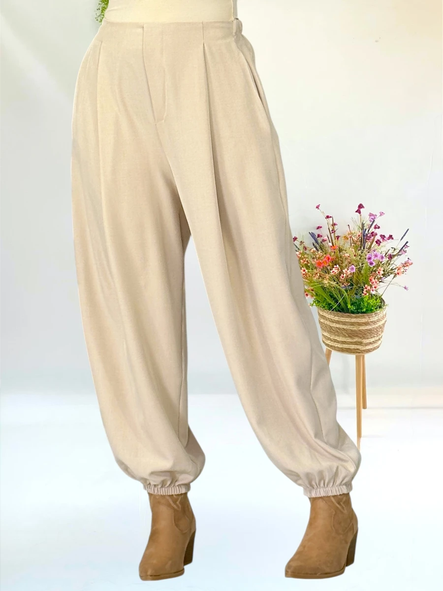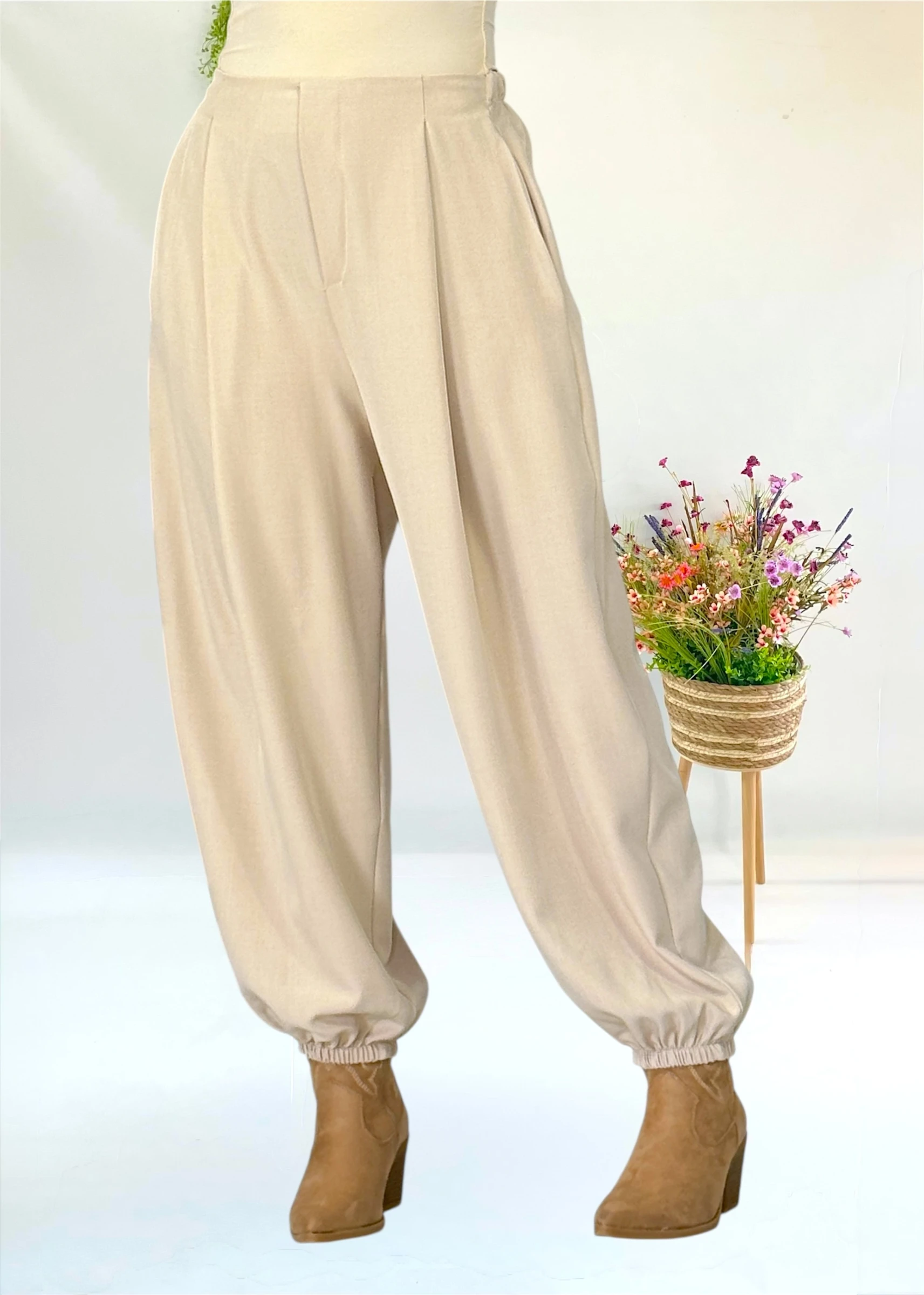 Pantalón bombacho beige – comodidad y estilo en una sola prenda.