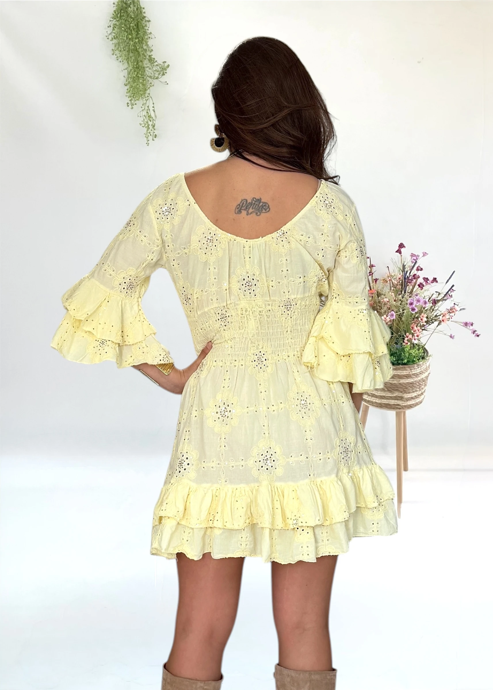 Vestido amarillo con bordados y volantes 💛 luminoso, dulce y con un brillo sutil que lo hace aún más especial ✨